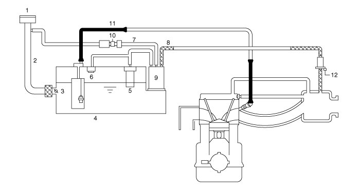 The Canister is filled with charcoal and absorbs evaporated fuel vapor from the fuel tank. The gathered fuel vapor in canister is drawn into the intake manifold by the ECM/PCM when appropriate conditions are set.