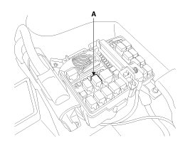 5. Disconnect the battery (-) cable, and then install the fuel pump relay (A).