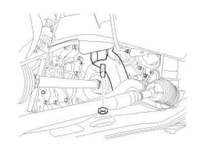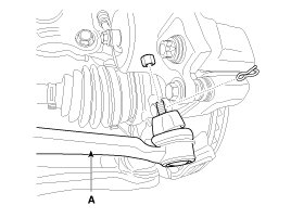 3. Remove the split pin and castle nut and then disconnect the tie-rod end (A) from the front knuckle.