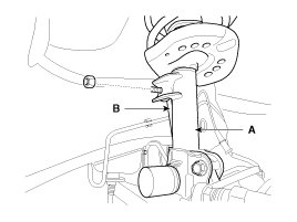 5. Disconnect the stabilizer link (B) with the front strut assembly (A) after loosening the nut.