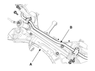 10. Loosen the mounting bolt and then remove the stabilizer bar (B) from the sub frame (A).