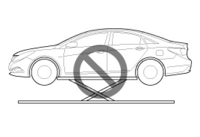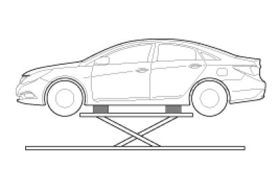 Using a scissors lift may cause damage of the side out seal molding panel because the lift point is located higher than side out seal molding panel.