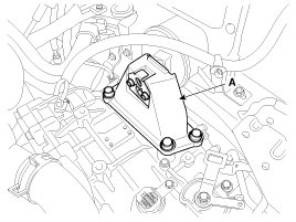 12. Remove the automatic transaxle support bracket mounting bolt (A).