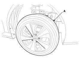 4. Remove driveshaft nut (A) from the front hub under applying the brake.