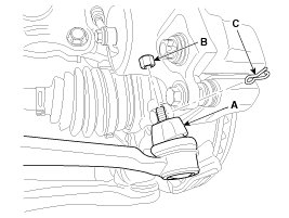 6. Remove the tie rod end ball joint (A) from the knuckle.