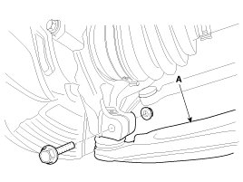 10. Loosen the strut mount bolts and then remove the knuckle assembly (A).