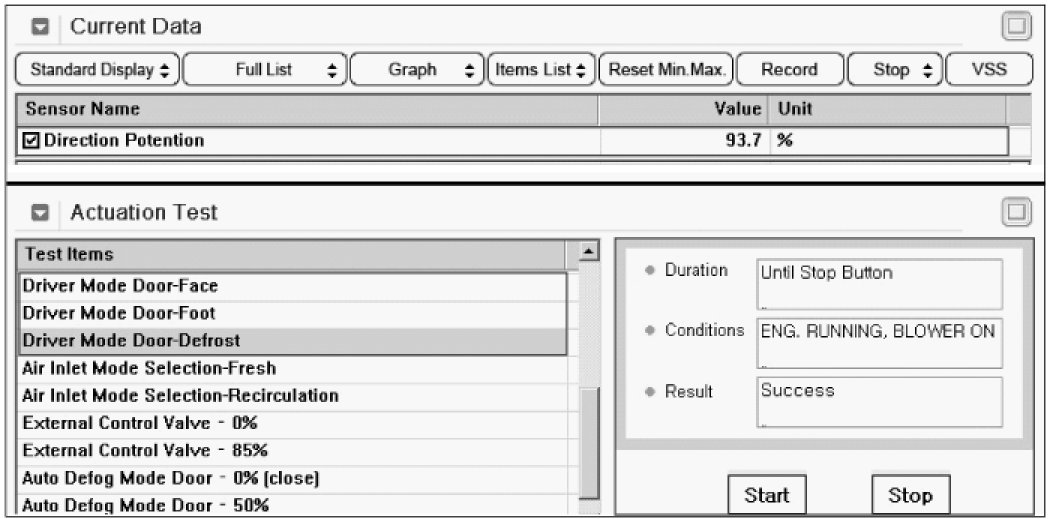 4. Select and perform Actuation test Driver Mode Door - Face / Foot / Defrost in order.