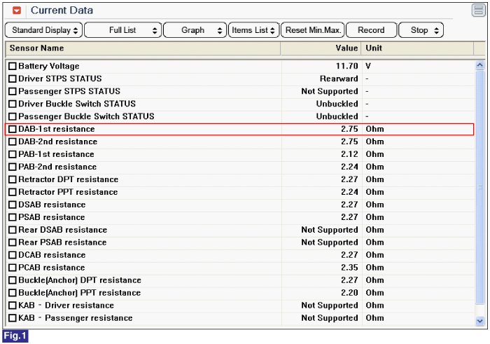 3. Monitor the "Driver airbag resistance" parameter on the Scantool.