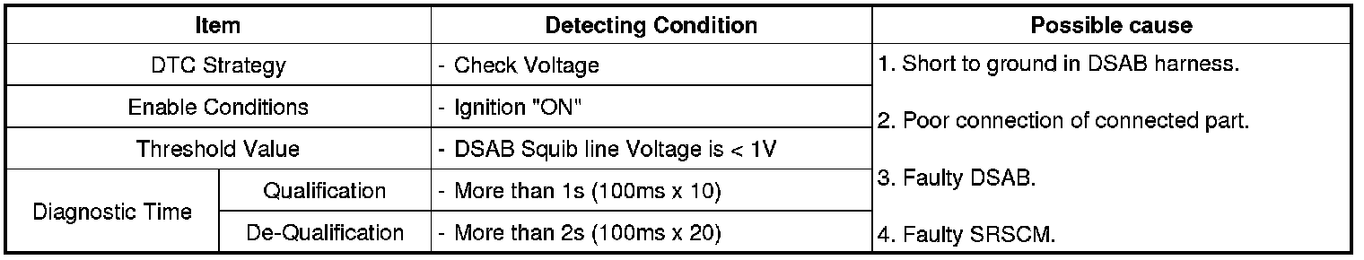 The SRSCM sets DTC B1380 if there is a short to ground in DSAB harness.
