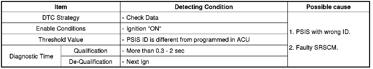 The SRSCM sets DTC B1415 if PSIS with wrong ID is detected.