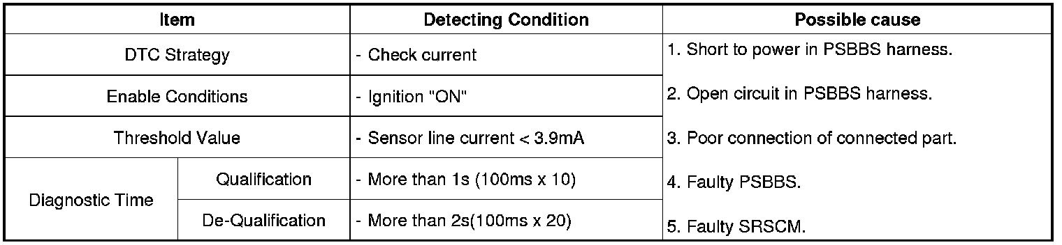 The SRSCM sets DTC B1513 if there is a open circuit or short to power in PSBBS harness.