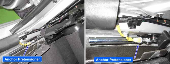 Driver Anchor Pretensioner operates as a second Belt Pretensioner if it gets into a deployment condition after a collision. It is located near anchor on driver seat and it makes up for the existing short stroke. Driver Anchor Pretensioner is supported by two cables and it is an auxiliary to prevent a driver from breaking away as seat belt is being pulled toward anchor side after a collision.