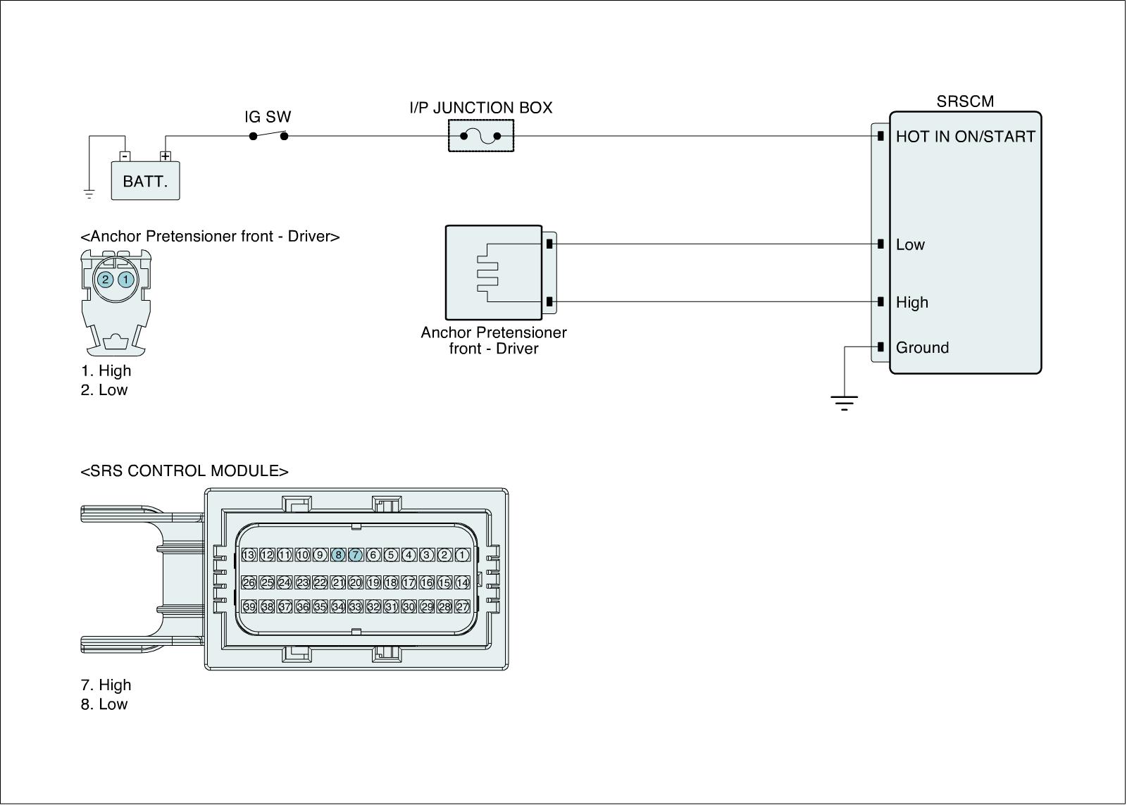 Never measure resistance of Anchor Pretensioner front-Driver directly, Current of measuring device may cause unexpected airbag deploy.