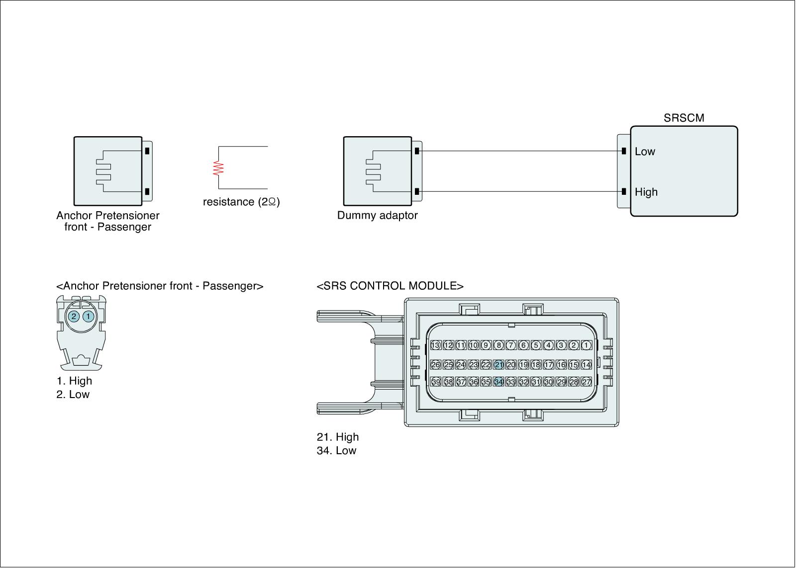 3. Disconnect Anchor Pretensioner front-Passenger and connect the dummy and dummy adapter to main harness connector.