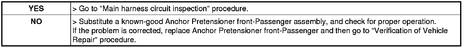 B1736 Anchor Pretensioner front-Passenger resistance circuit short to Ground - Inspection/Repair:_:W/Harness Inspection