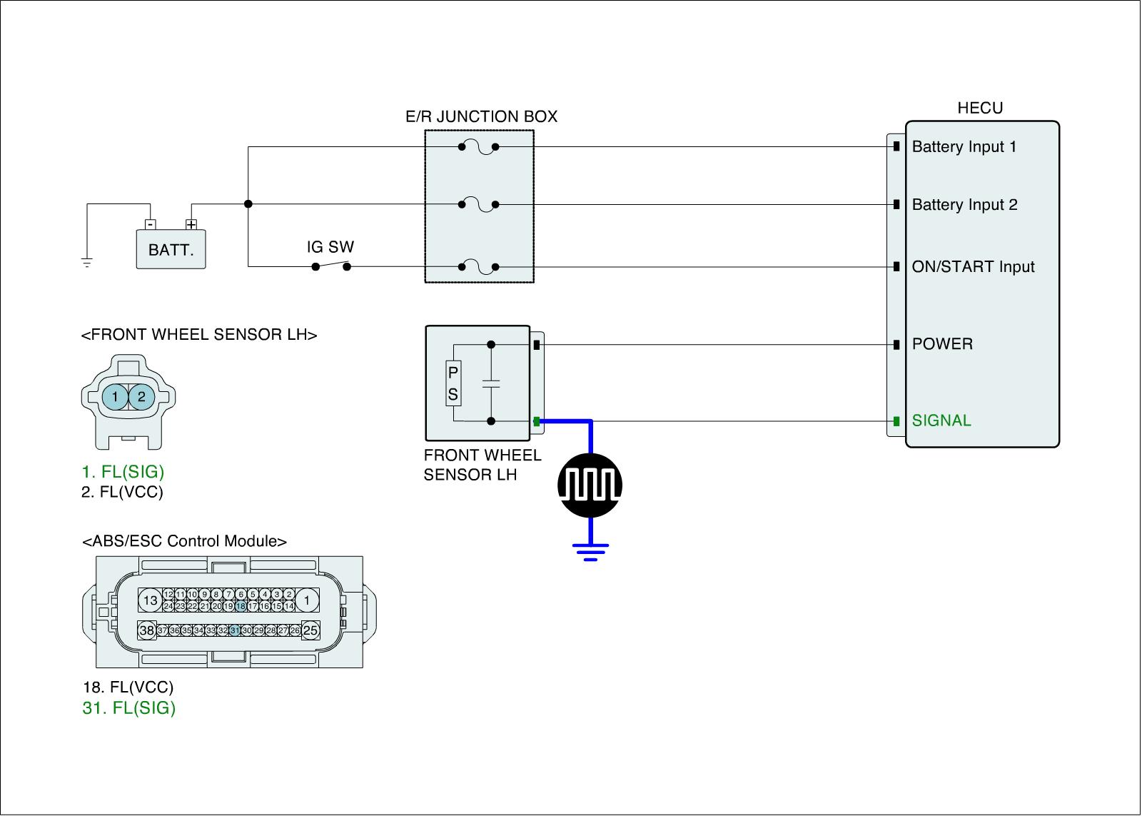 C1201 Wheel Speed Sensor Front-LH Range / Performance / Intermittent - Inspection/Repair:_:Component Inspection