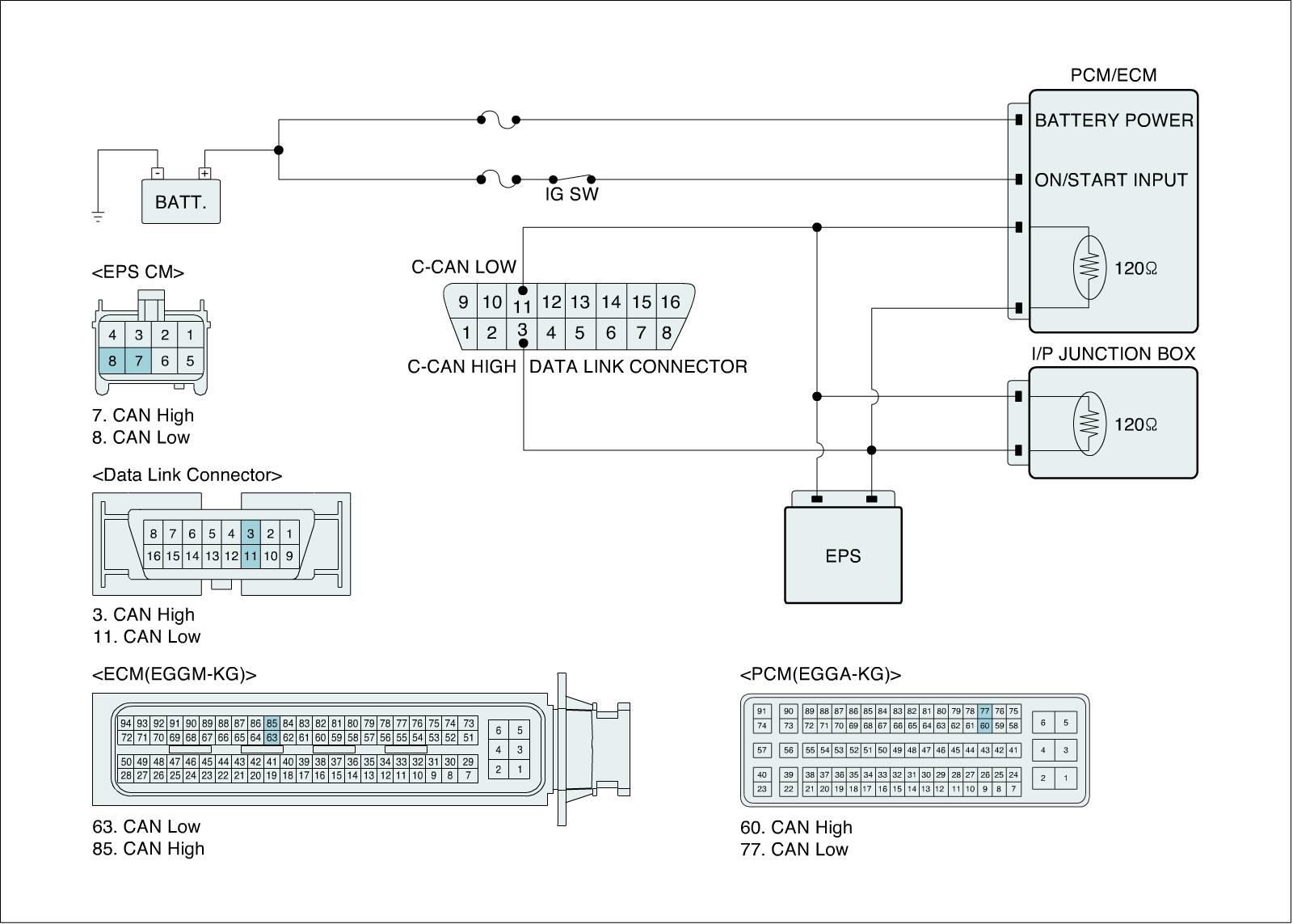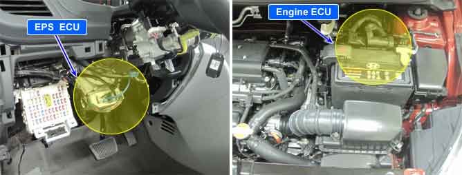 The EPS ECU gets signals such as engine RPM and vehicle speed from engine ECM through CAN communication line. And it operates it's MDPS system.