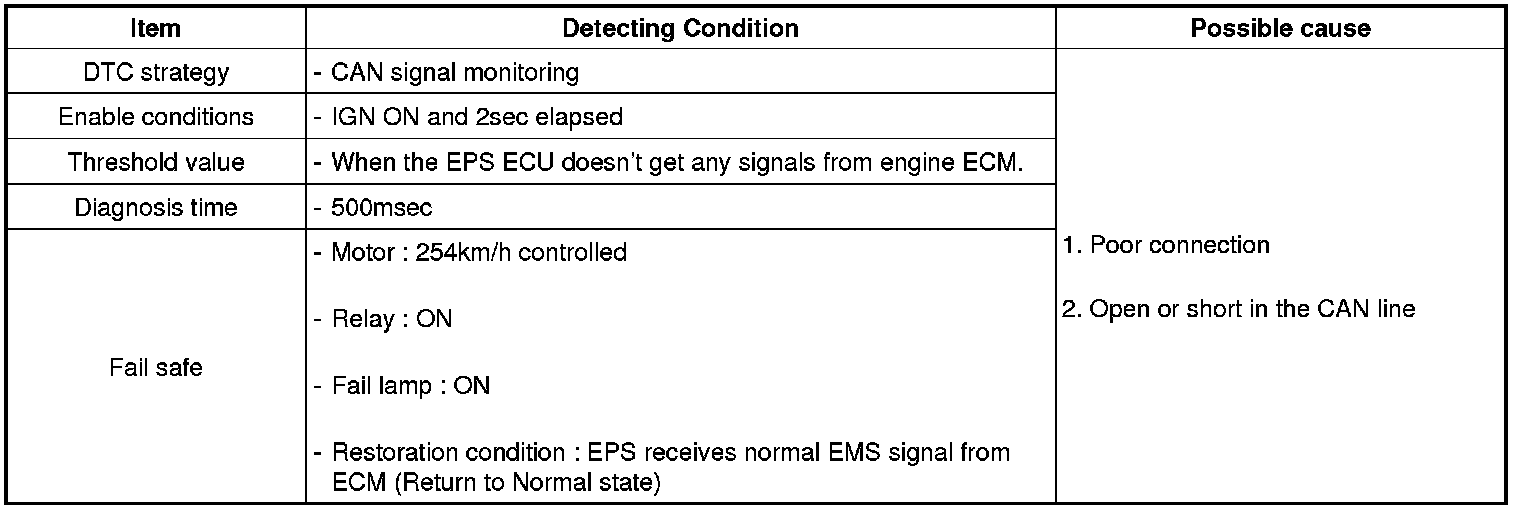 The EPS ECU sets this DTC if it hasn't gotten any signals from engine ECM.
