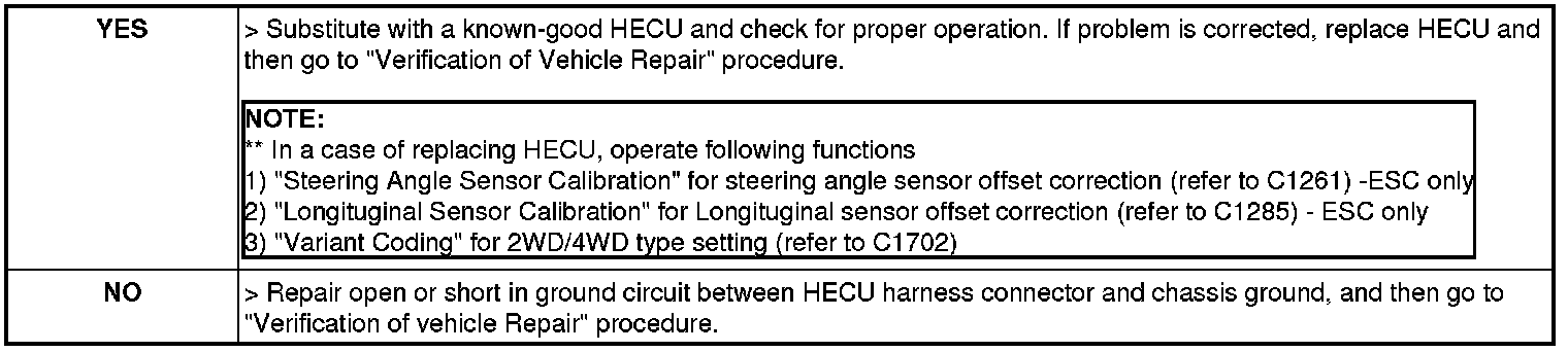 3. Measure resistance between ground terminal of the HECU harness connector and chassis ground.