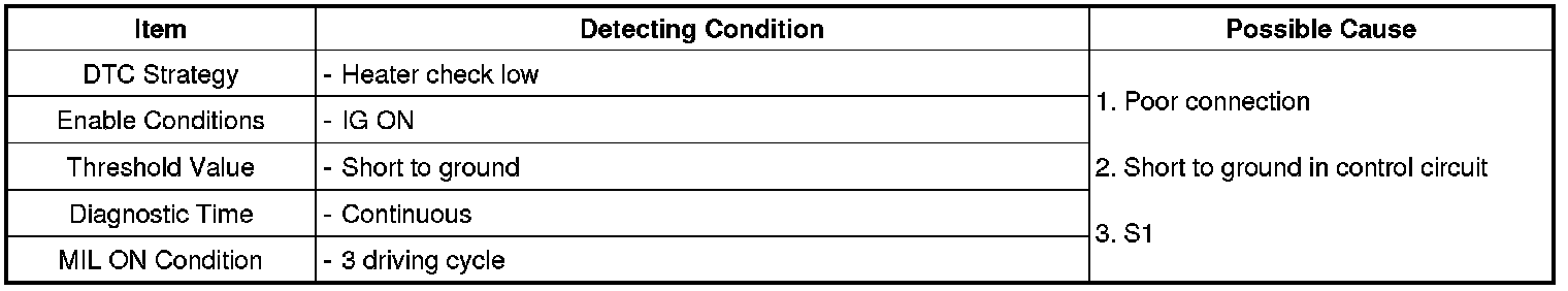 When ECM detects short to ground in the heater control circuit(S2), ECM sets DTC P0037.