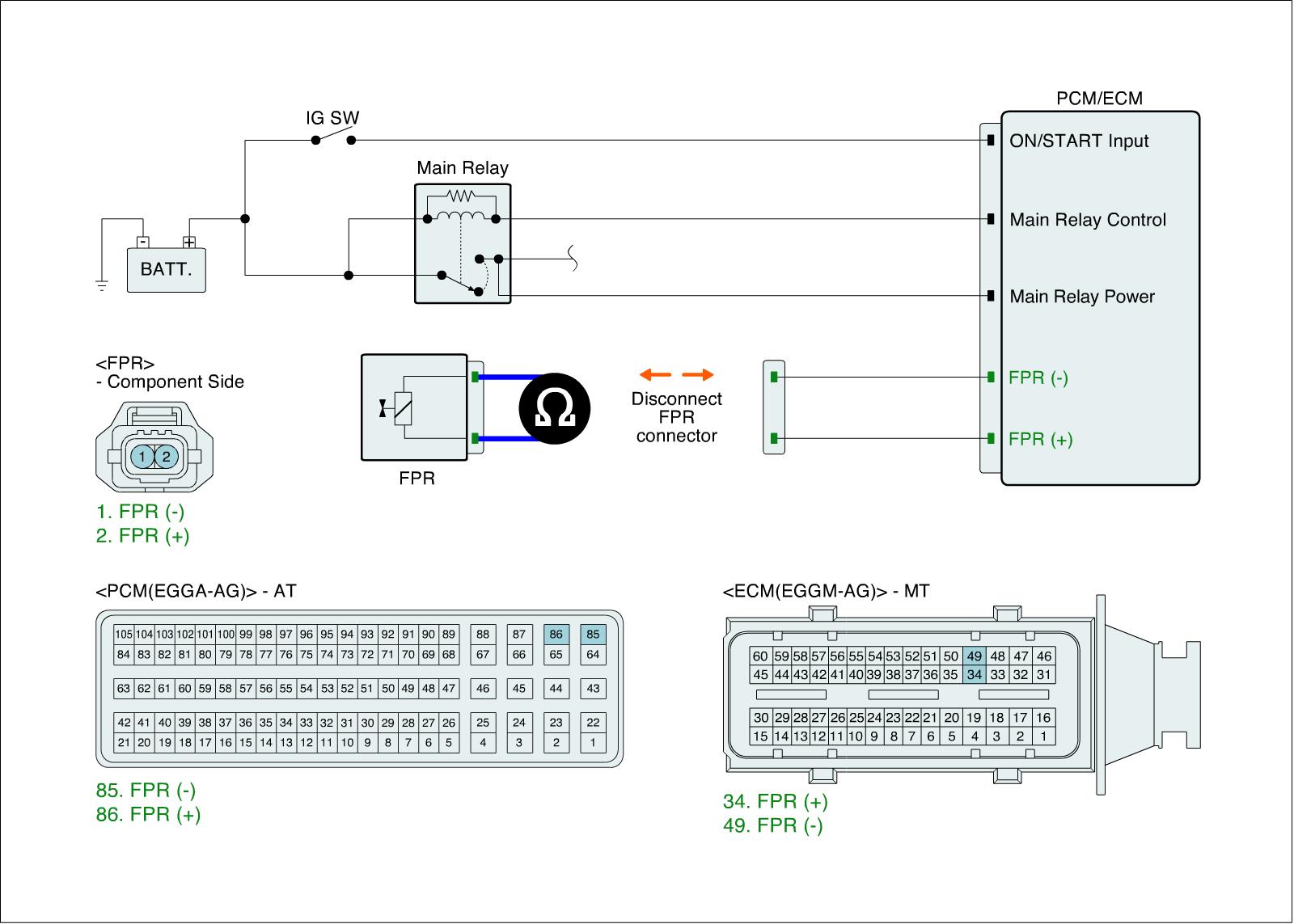 3. Measure resitance between terminal 1 and 2 of FPR connector.(Component Side)