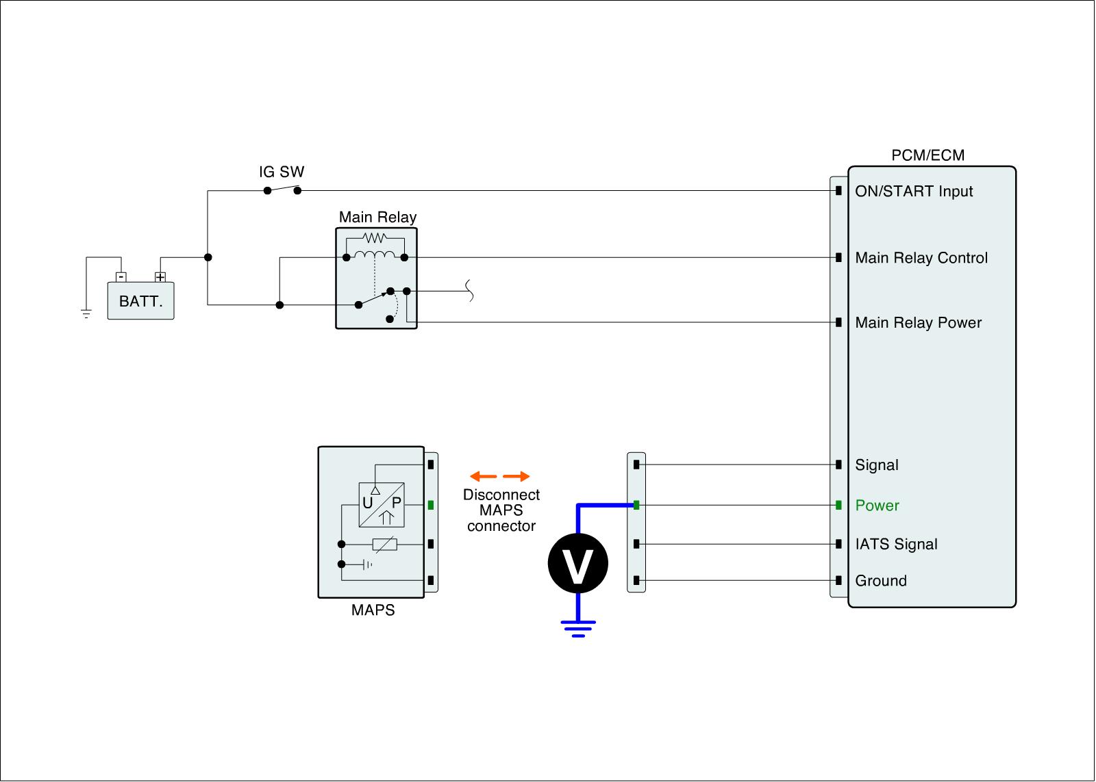 4. Measure the voltage between power terminal of MAPS harness connector and chassis ground.