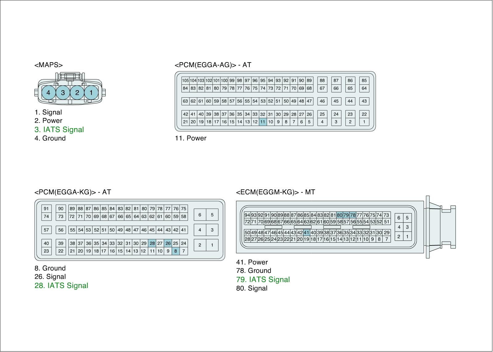 3. Measure resistance between signal and ground terminal of IATS harness connector.