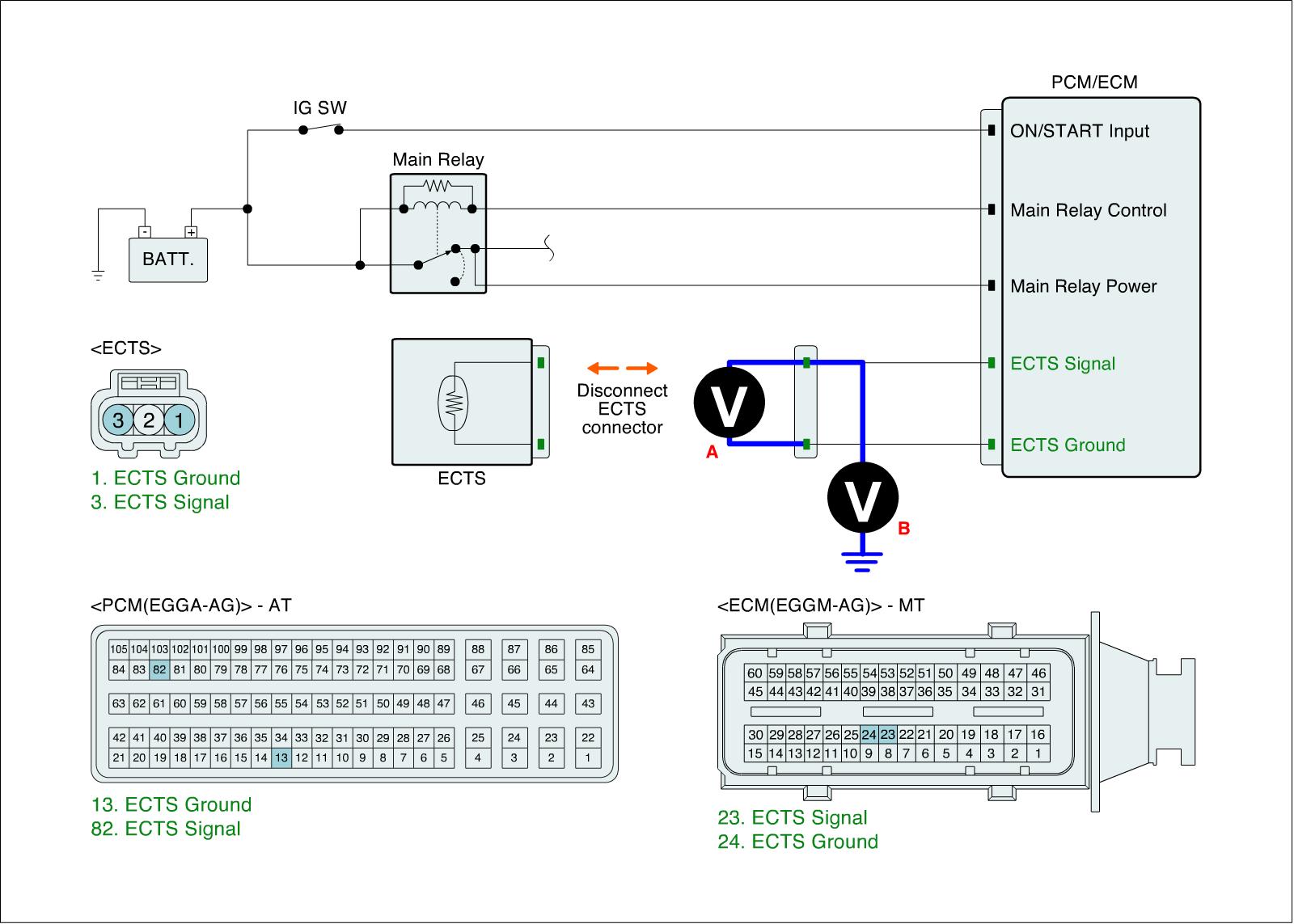 4. Measure voltage between signal terminal of ECTS harness connector and chassis ground.