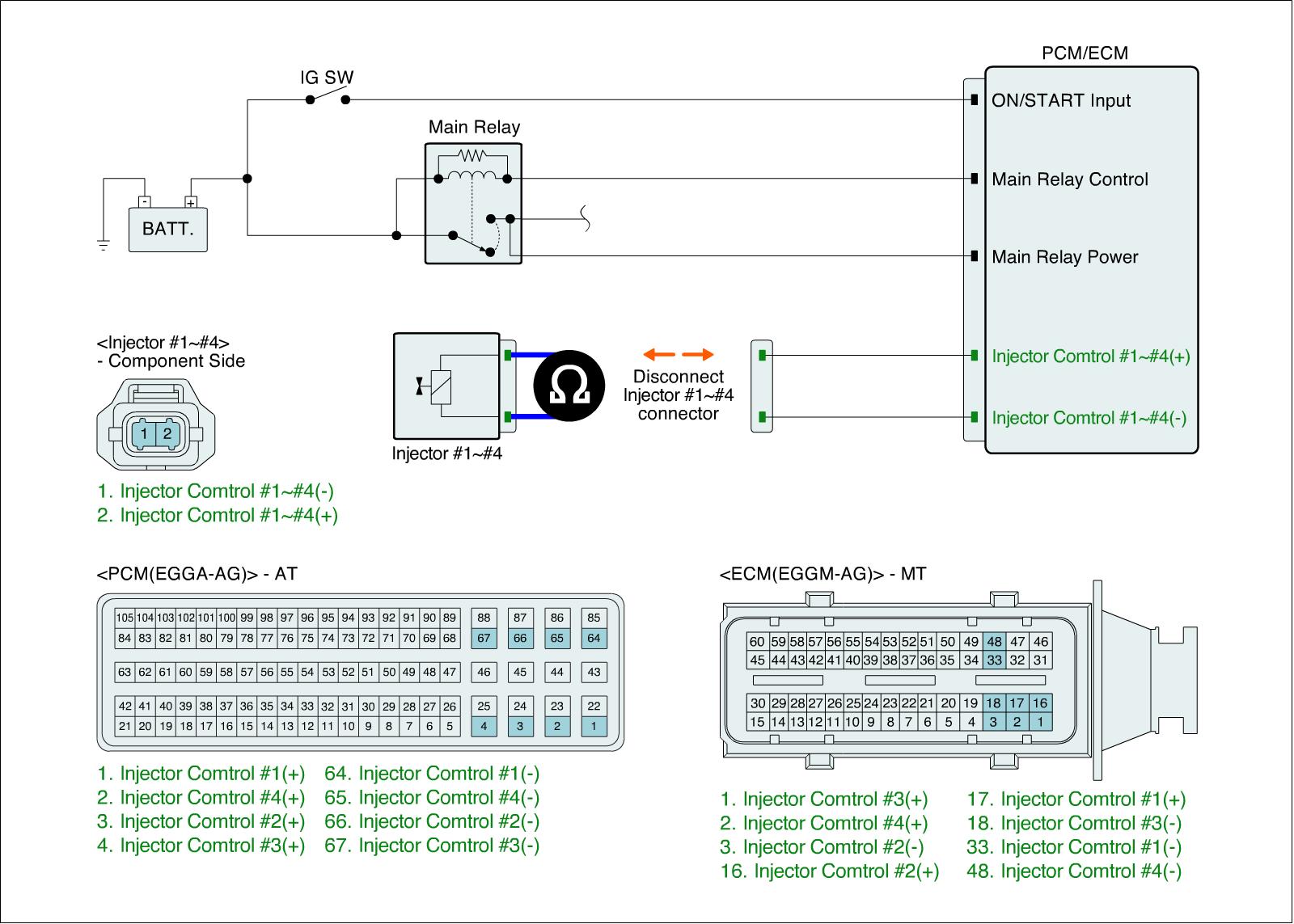 4. Measure resistance terminal 1 and 2 of Injector connector(Component side).