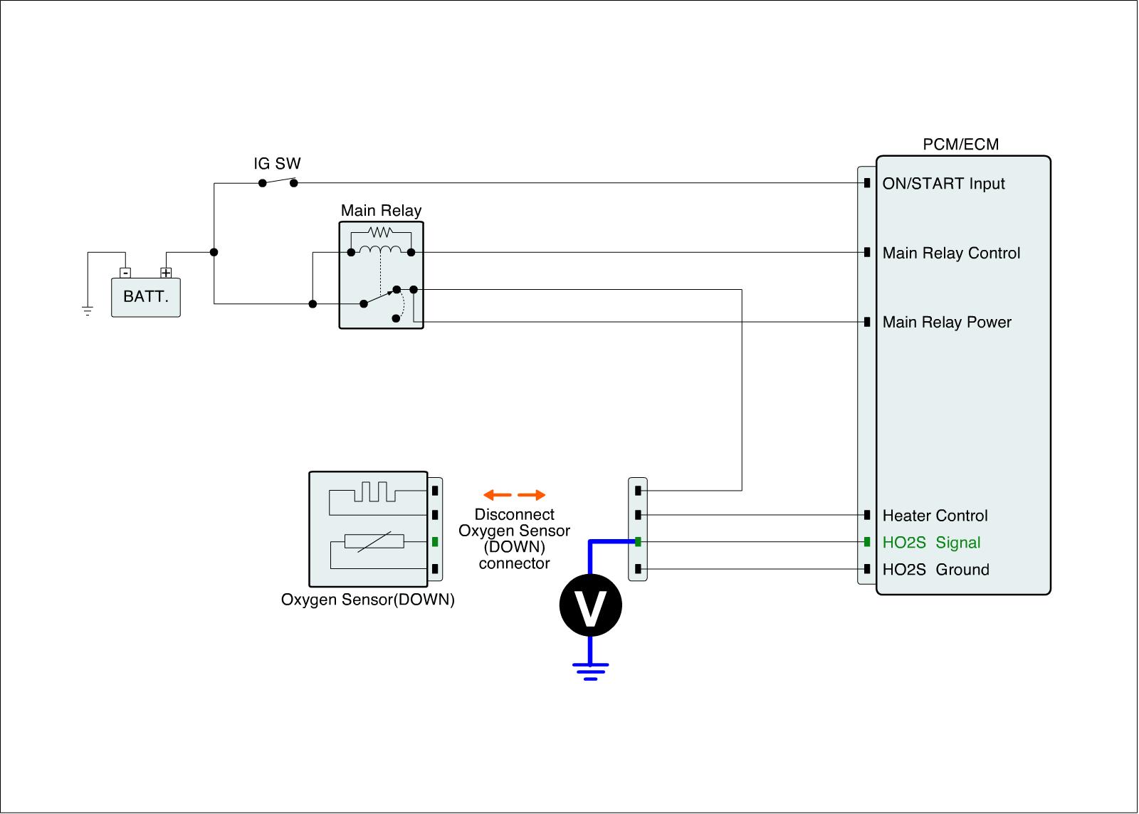 4. Measure the voltage between signal terminal of HO2S(S2) harness connector and chassis ground.
