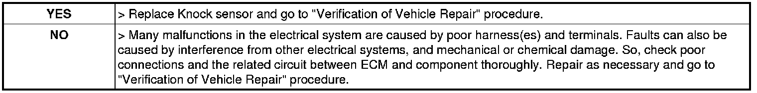 1. Substitute with a known - good Knock sensor and check for proper operation.