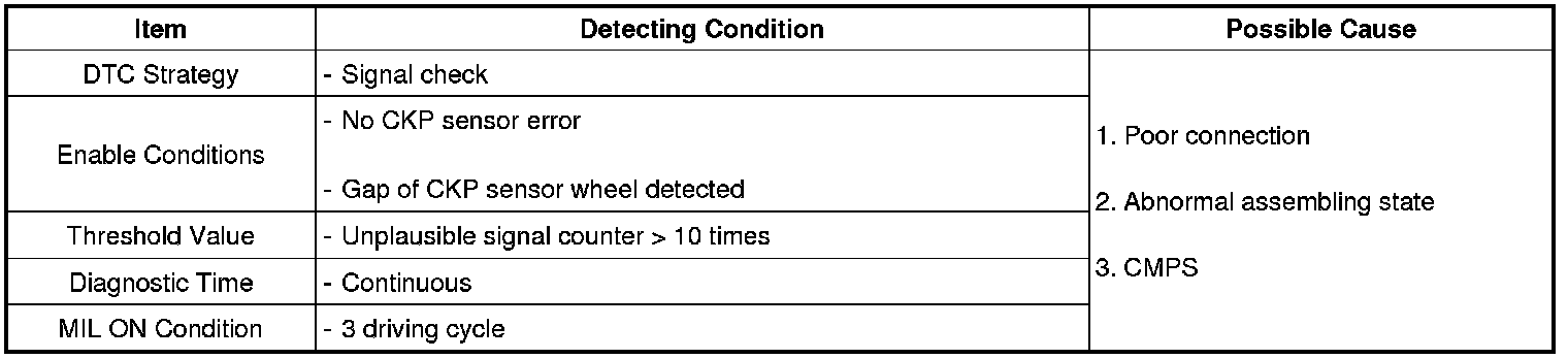Checking oputput signals from CMP during engine running, if the expected number of cam tooth count is not observed, ECM sets P0341.
