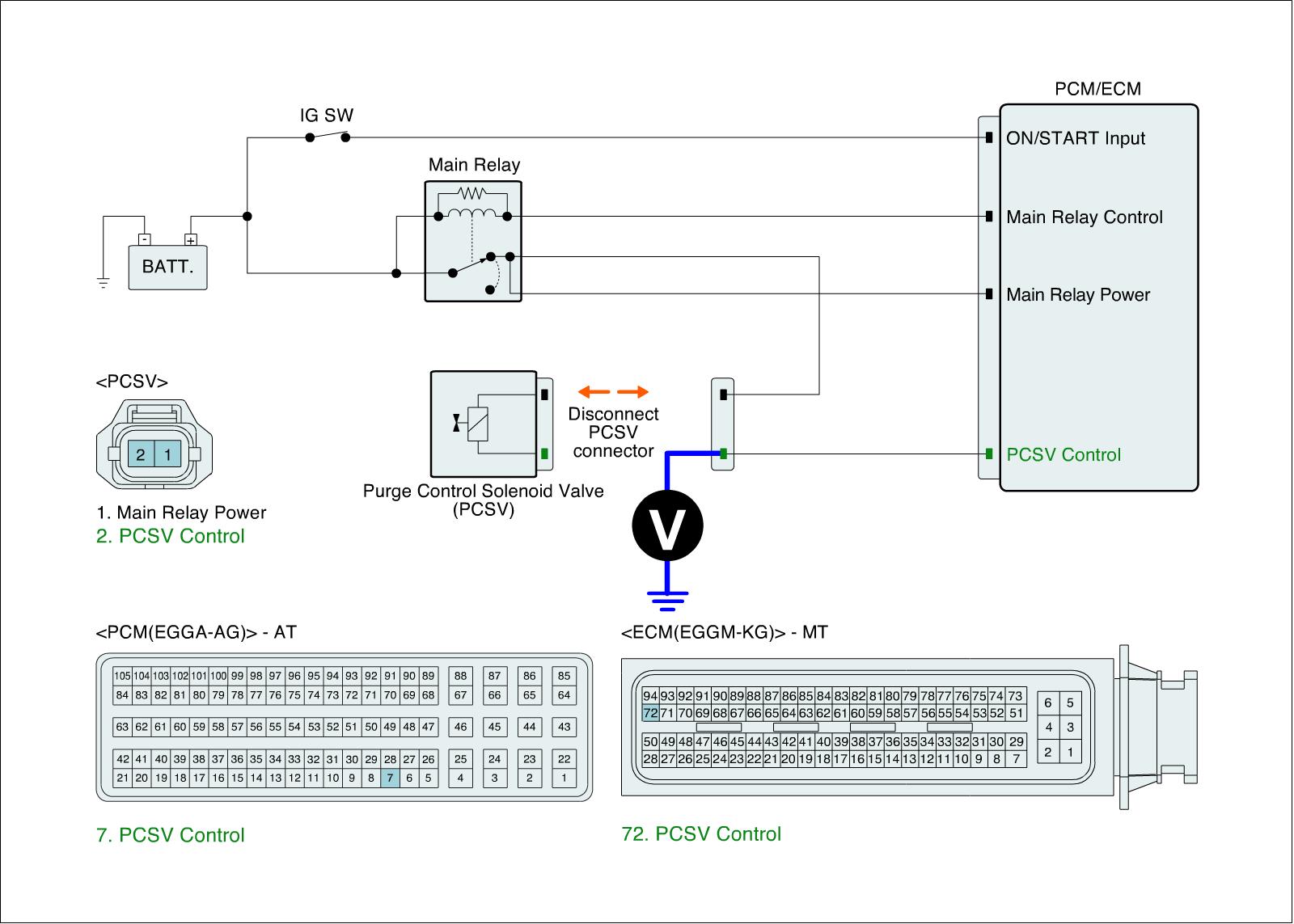 4. Measure the voltage between power terminal of PCSV harness connector and chassis ground.