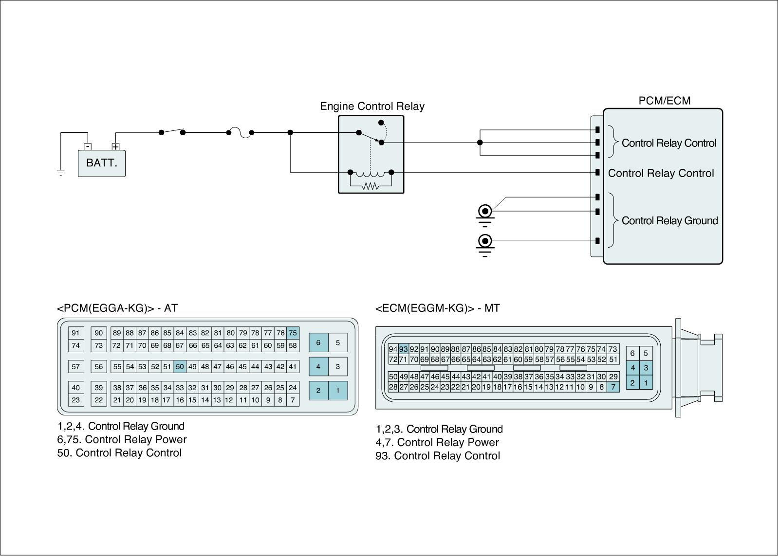 ECM measures and compares voltage from ignition key and each relay. With this mechanism, ECM knows if the main relay switch turns on after IG on or if turns OFF after IG off.