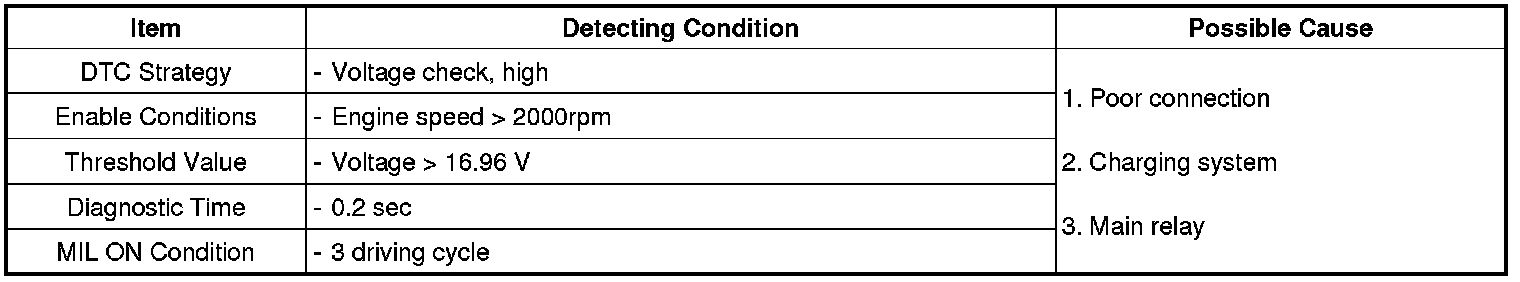 If the system voltage is over 17 V during 0.2 sec, ECM sets DTC P0563.