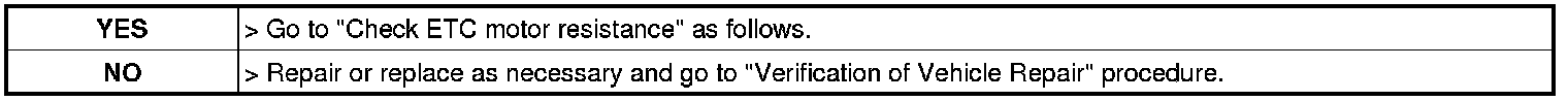 2. Measure the resistance between ETC motor(+) and (-) terminals of ETC Motor & TPS connector (component side).