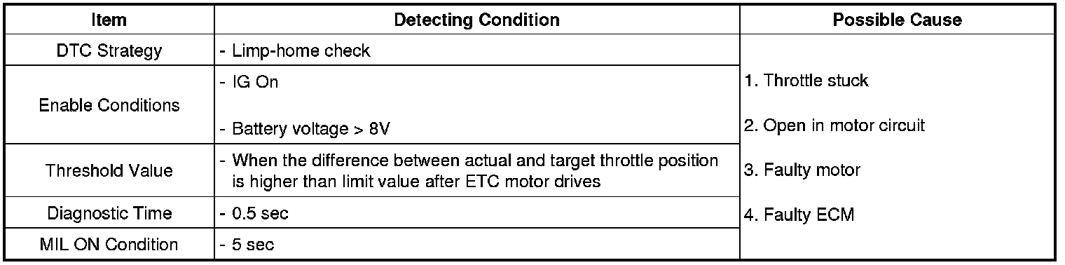 Checking output signals from TPS under detecting condition, if the difference between real and target throttle position is above the specified value, ECM sets P0638.