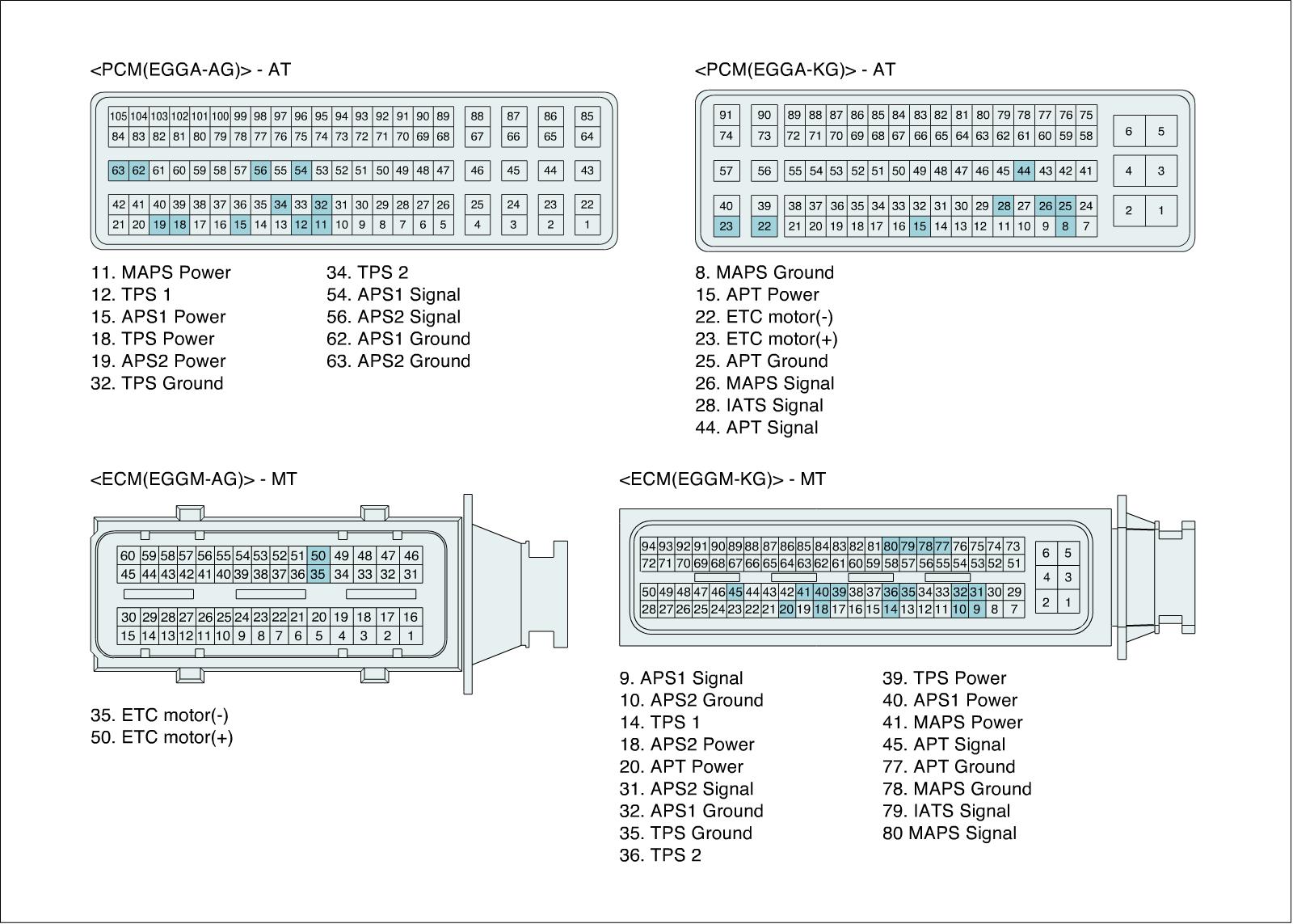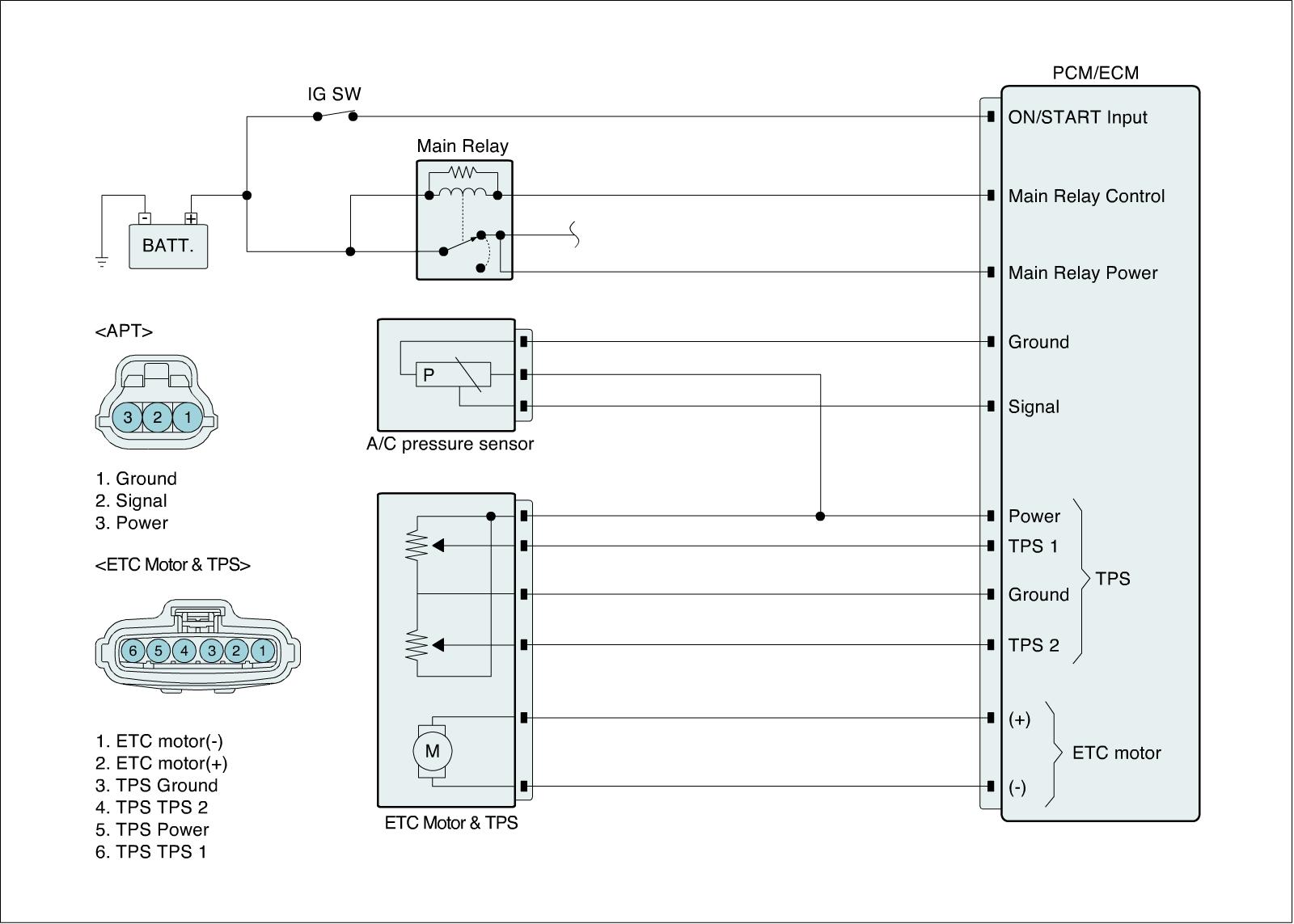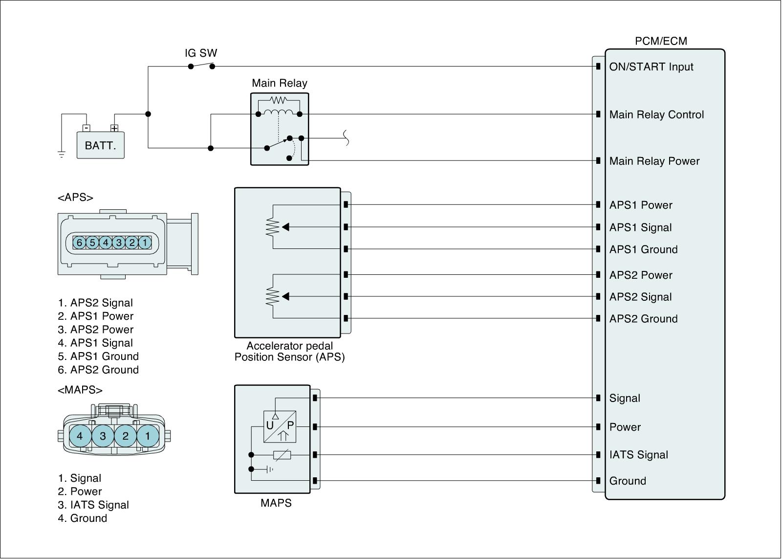ECM is activated by power supply. Signals from several sensors, such as CKPS and APS, is inputted to ECM. Comparing inputted siganals with control LOGIC saved at micro controller and EEPROM, ECM controlls engine as actuating injectors, solenoids and relays.