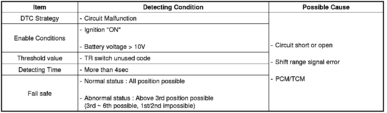 This code is set when undefined code is input to PCM/TCM without specific of transmission pattern table.