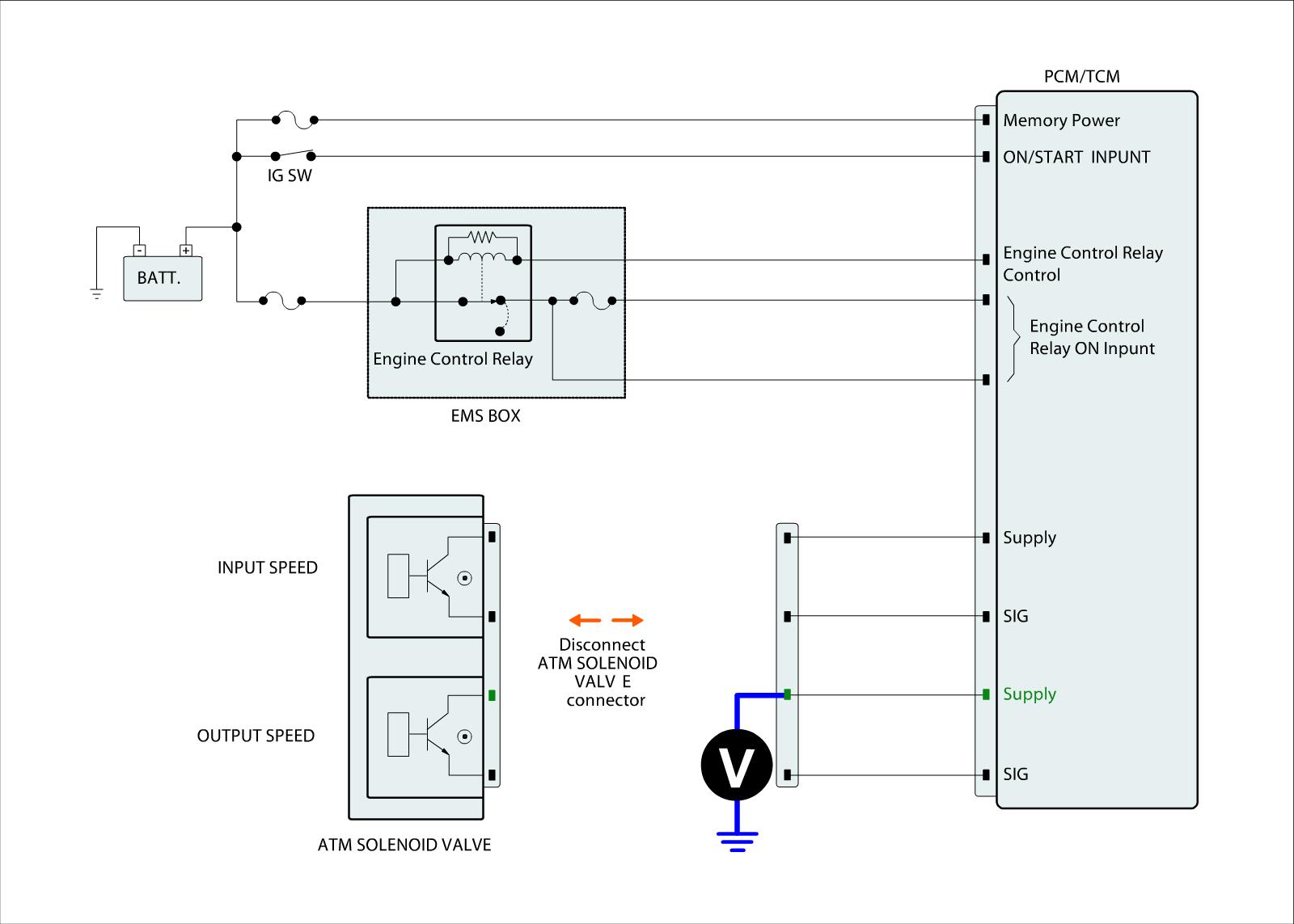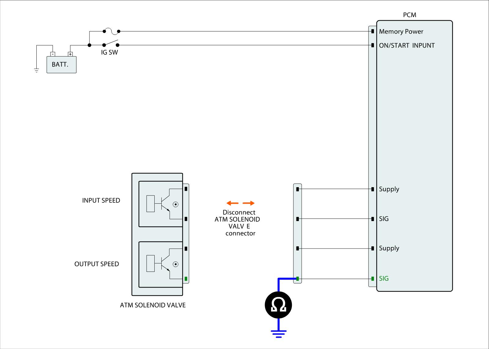 2. Disconnected "ATM solenoid valve" connector and PCM/TCM connector.
