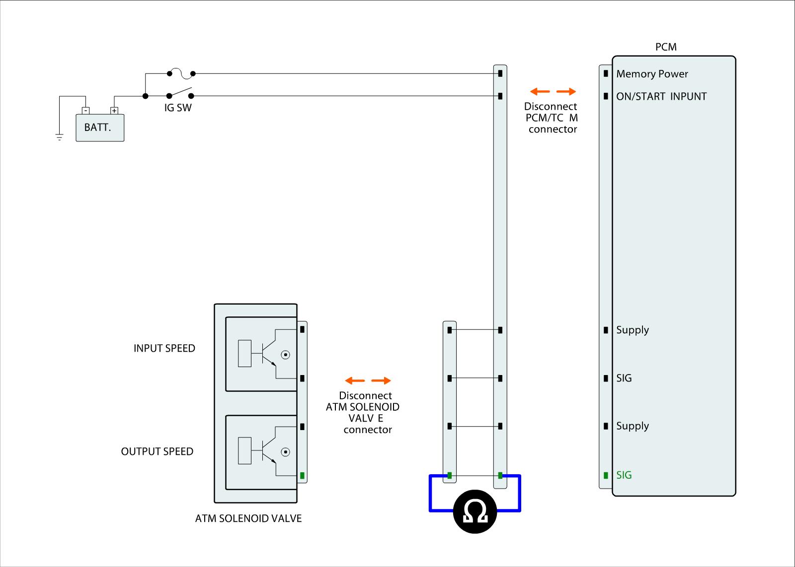 3. Measure resistance between signal of Output speed sensor and PCM TCM connector.