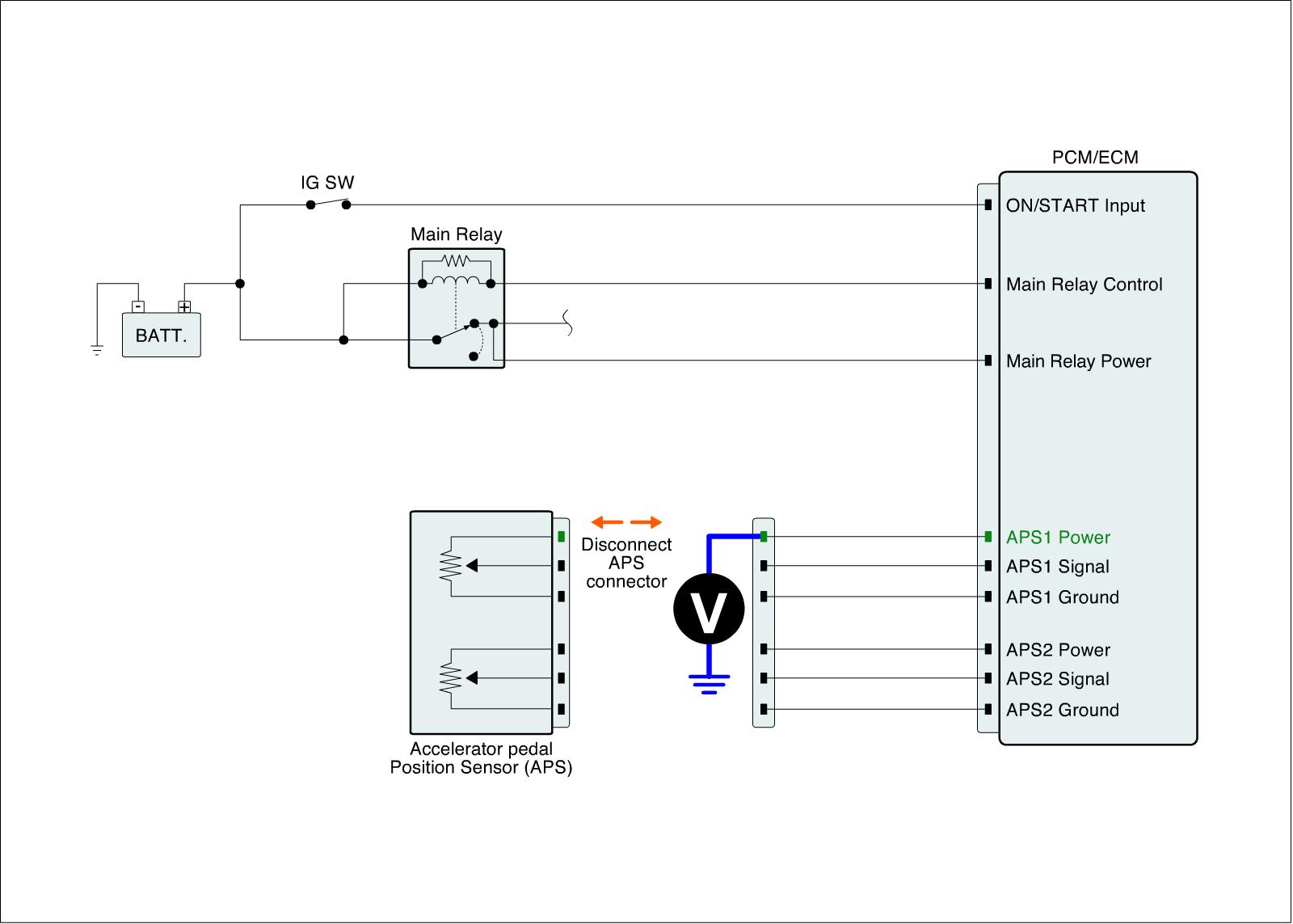3. Measure voltage between APS1 power terminal of APS harness connector and chassis ground.