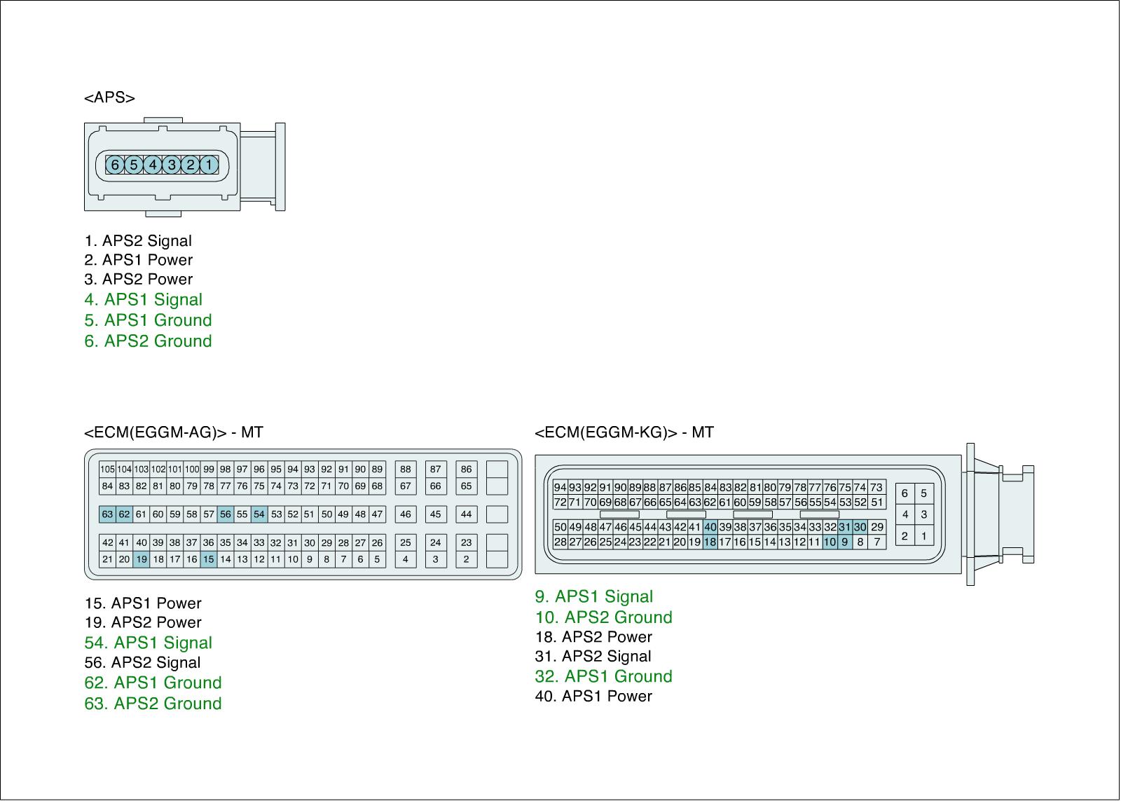 1. IG "OFF" and disconnect APS connector and ECM connector.