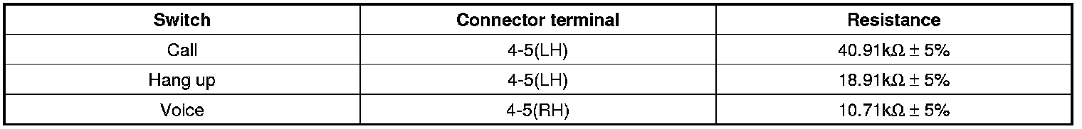 1. Check the hands free remote control switch for resistance between No.4 and No.5 terminals in each switch position.