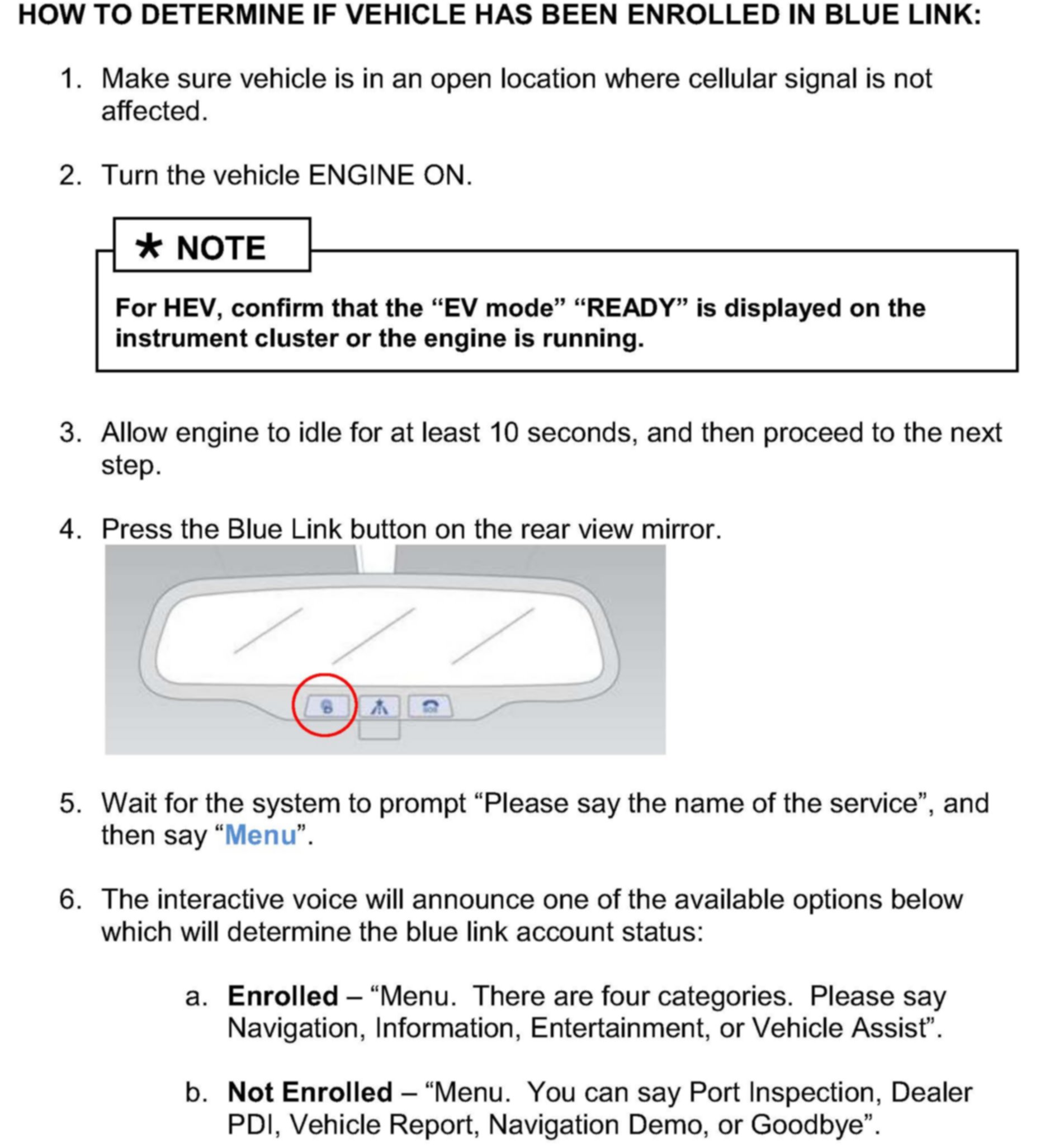 HOW TO DETERMINE IF VEHICLE HAS BEEN ENROLLED IN BLUE LINK