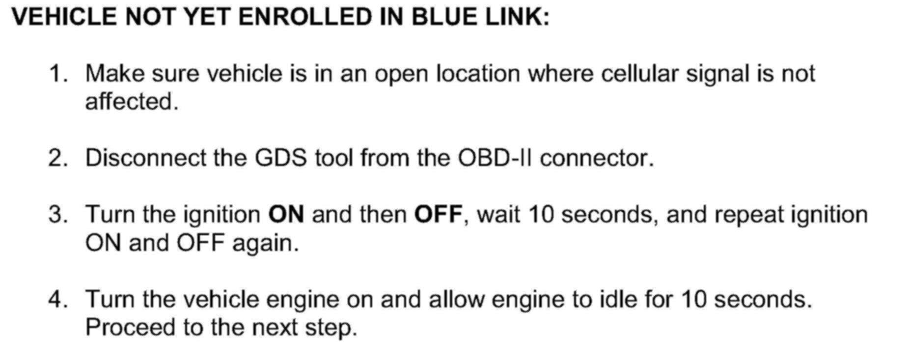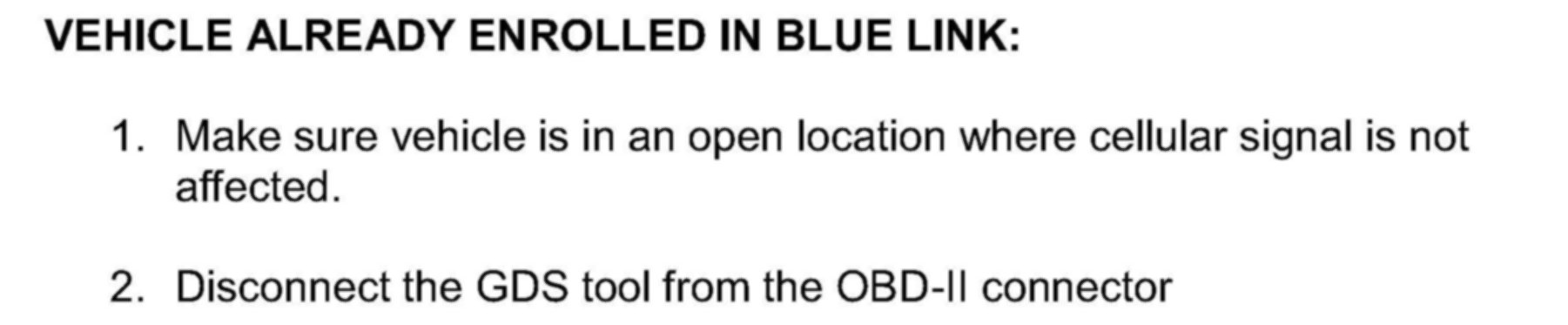 ^ Before starting Blue Link code clearing procedure, confirm if the vehicle is already enrolled in Blue Link.