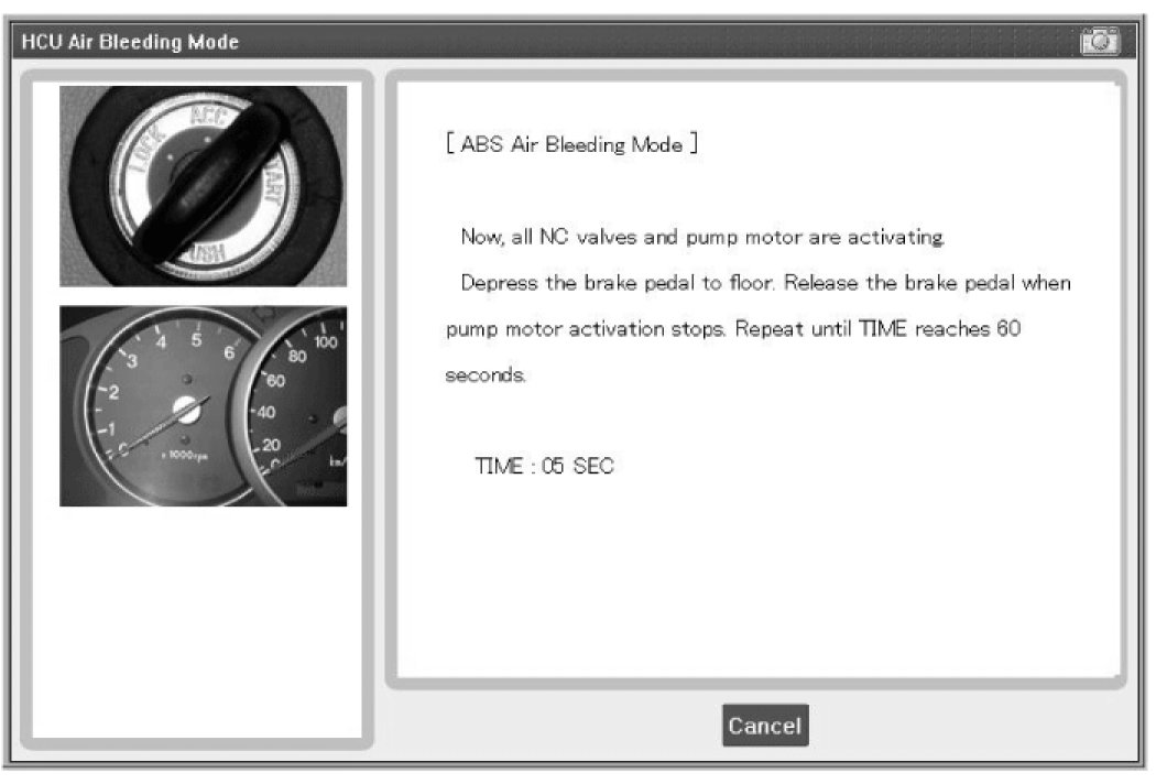 You must obey the maximum operating time of the ABS motor with the GDS to prevent the motor pump from burning.