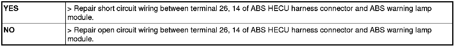 Check for continuity between terminal (M01-A) 19 of the cluster harness side connector and terminal 14 of ABS HECU harness side.