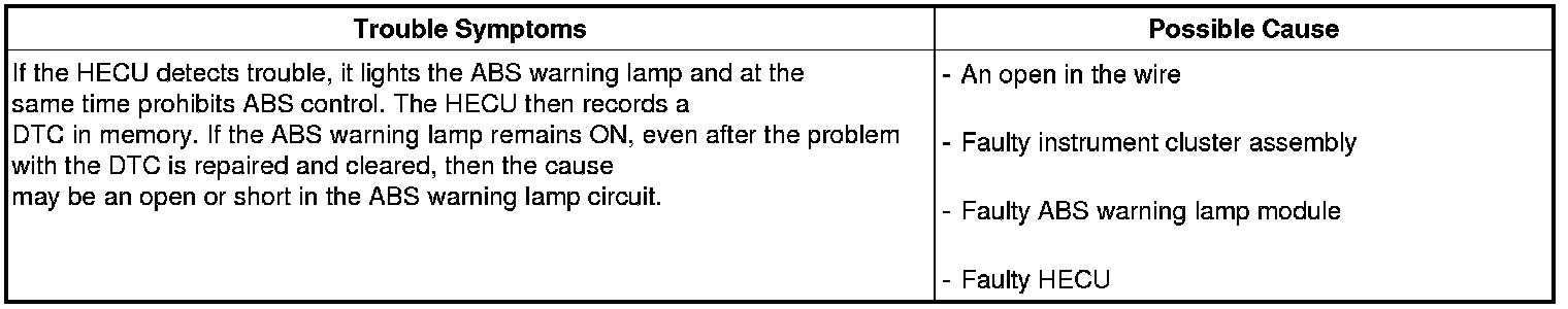 Check the power source for the ABS warning lamp