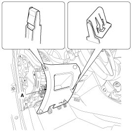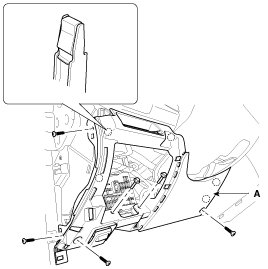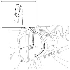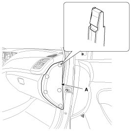 1. Using a screwdriver or remover, remove the crash pad side cover (A).